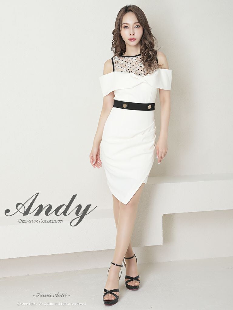 キャバドレス Andy アンディ 高級オフショルダー肩あき半袖膝丈ドレス