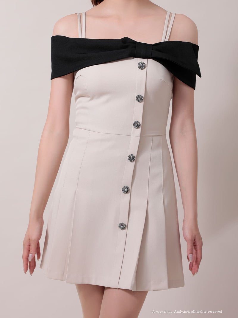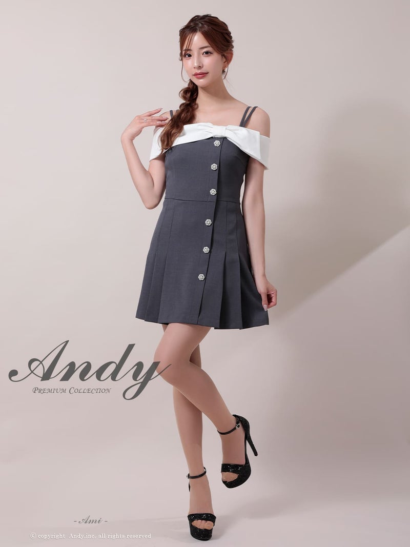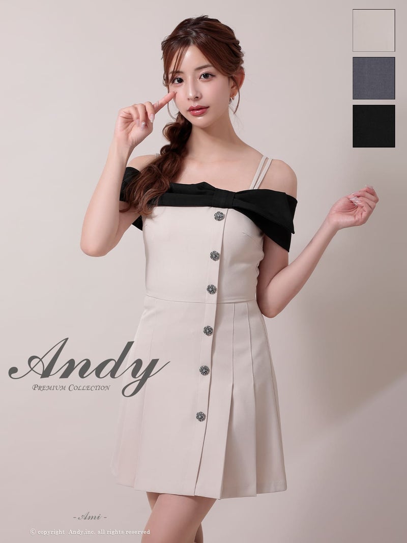 キャバドレス Andy アンディ 高級 オフショルダー フレアミニドレス プリーツ 襟付き リボン
