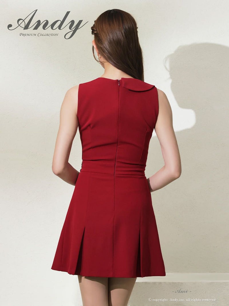 襟付きで大人セクシー♡ [Andy/アンディ] 高級 Aライン ミニドレス ノースリーブ ビジュー プリーツ ワンカラー