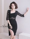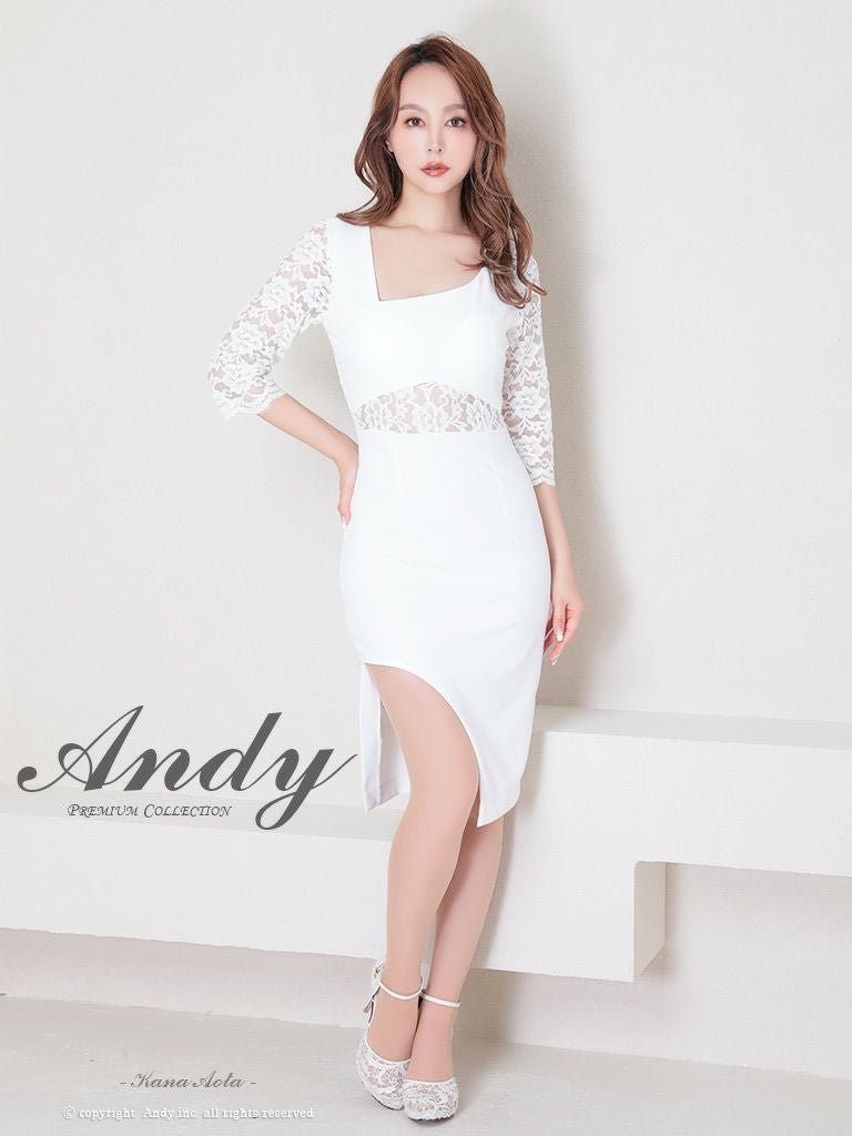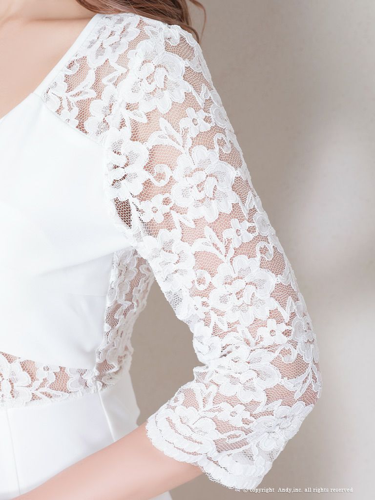 6. [Andy/アンディ] 高級 袖あり シアーレース切り替え タイト膝丈ドレス