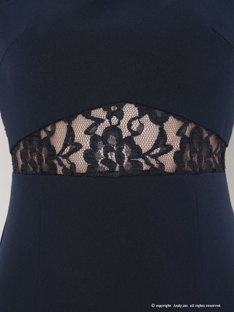 5. [Andy/アンディ] 高級 袖あり シアーレース切り替え タイト膝丈ドレス