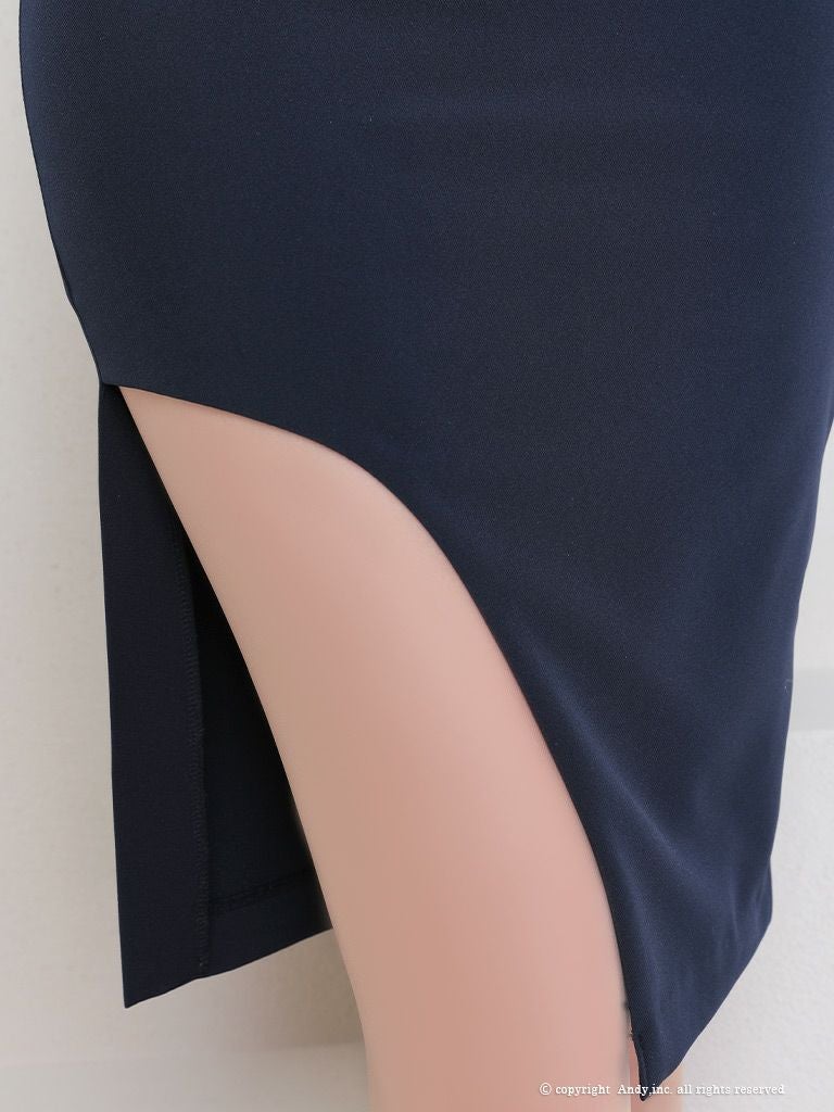 大胆なスリットで美脚魅せ☆ [Andy/アンディ] 高級 袖あり シアーレース切り替え タイト膝丈ドレス