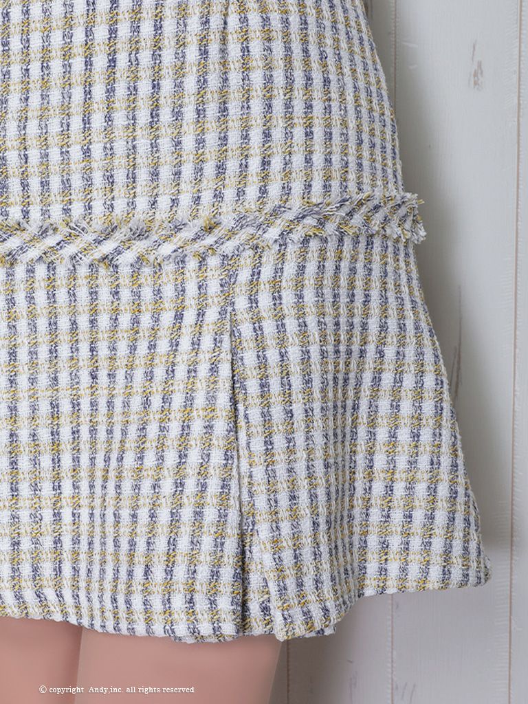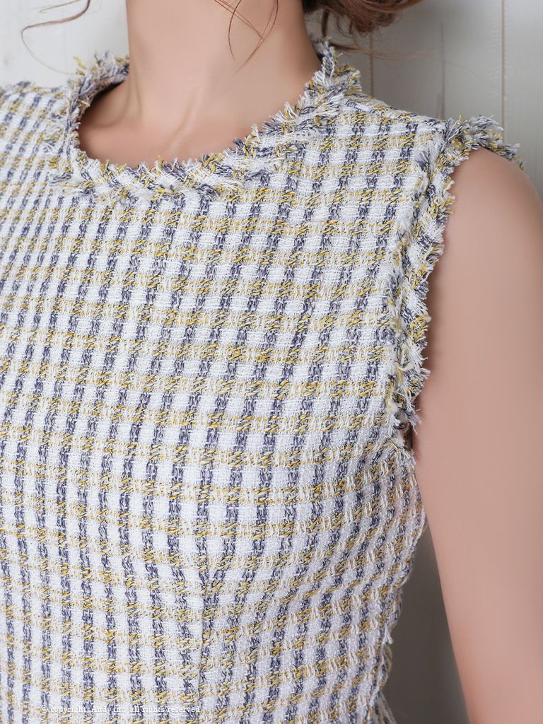 ノースリーブチェック柄フリンジ☆タイトミニドレス [Andy/アンディ] 高級シルエットなノースリーブタイトミニドレス