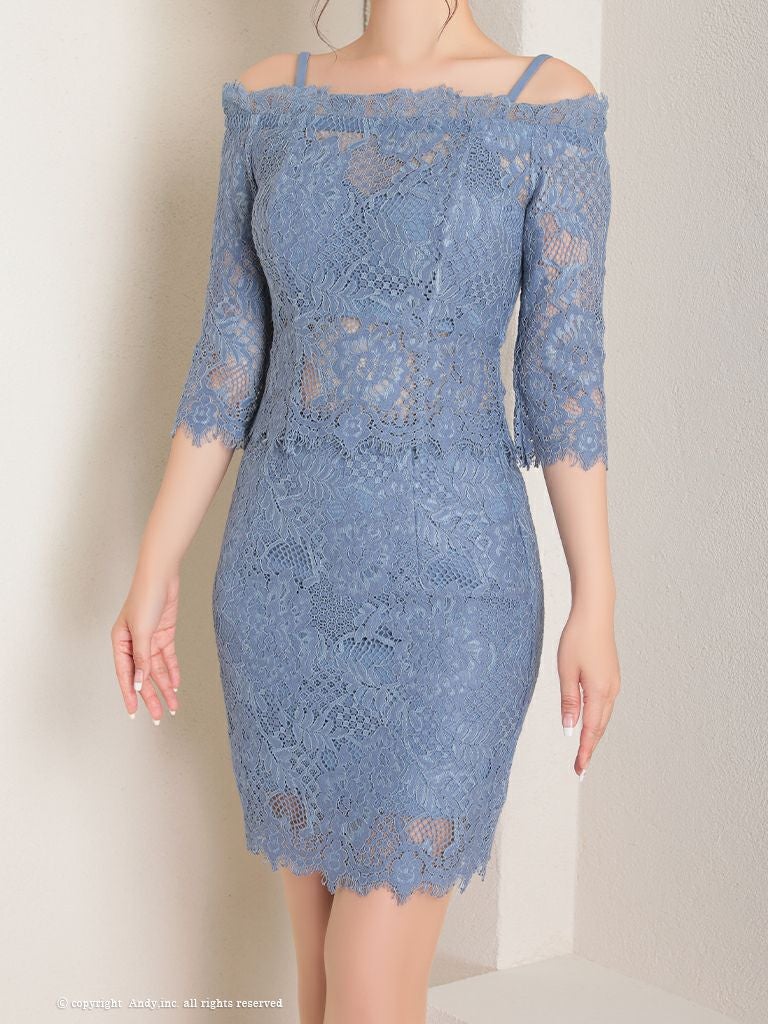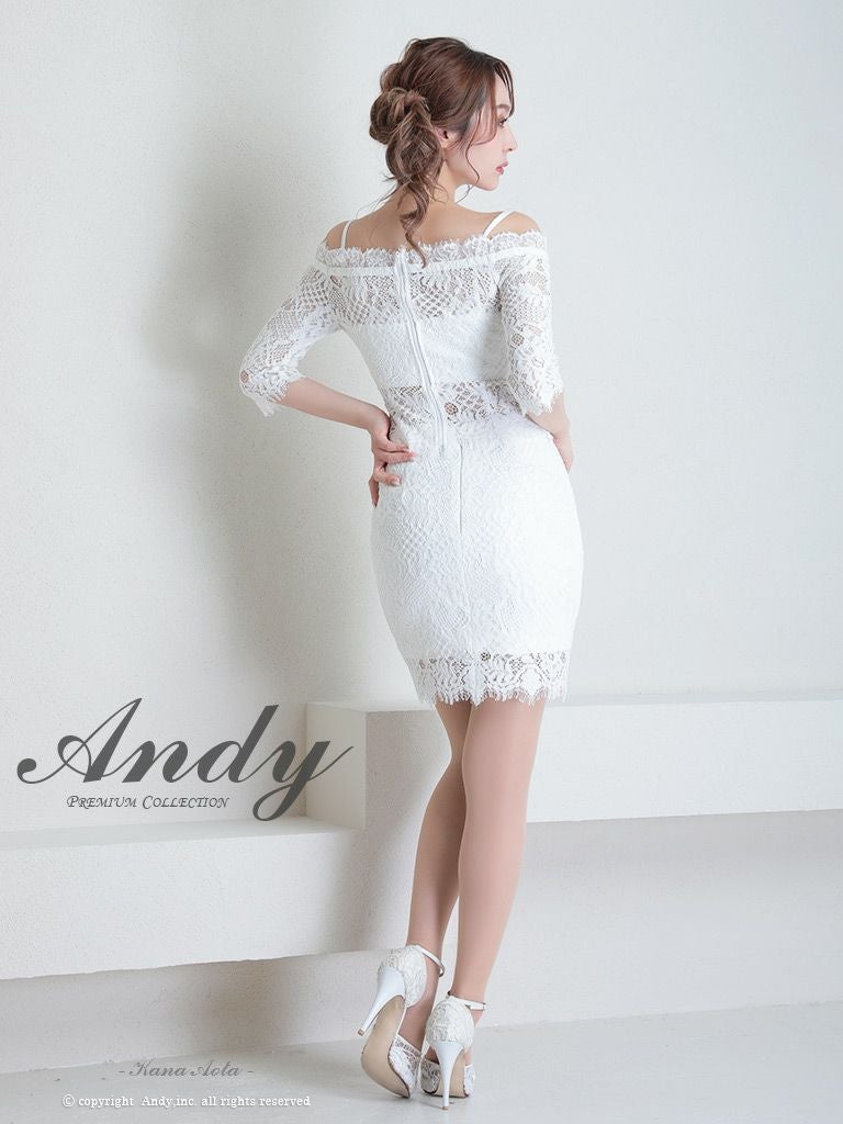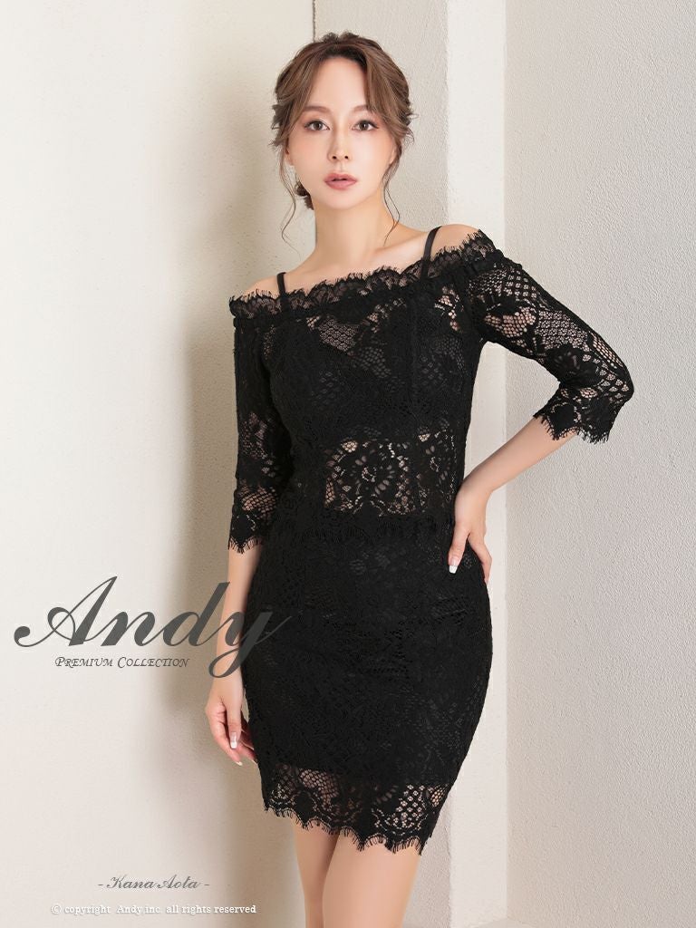 5. [Andy/アンディ] 高級総レース肩出し 二の腕カバーシースルーワンカラータイトミニドレス