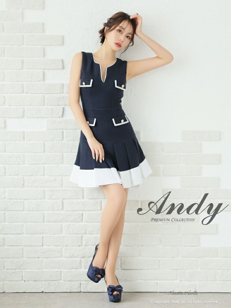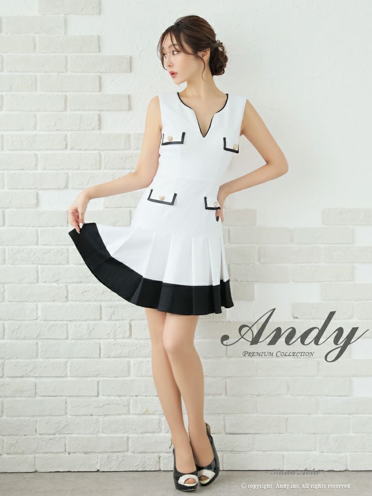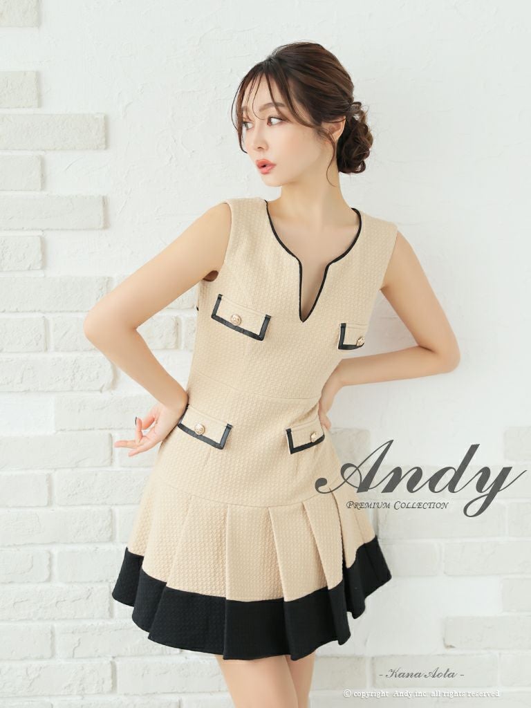 5. [Andy/アンディ] 高級バイカラーノースリーブプリーツフレアミニドレス