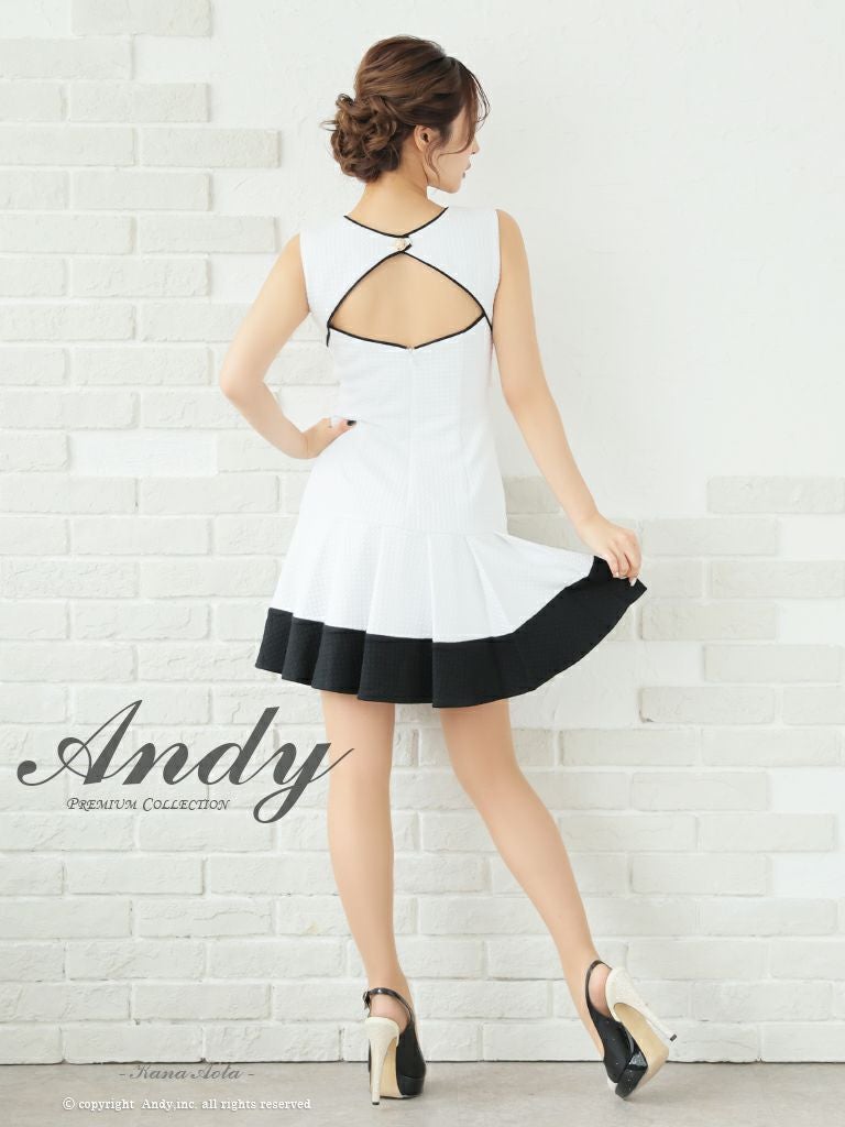 キャバドレス Andy アンディ 高級バイカラーノースリーブプリーツフレアミニドレス