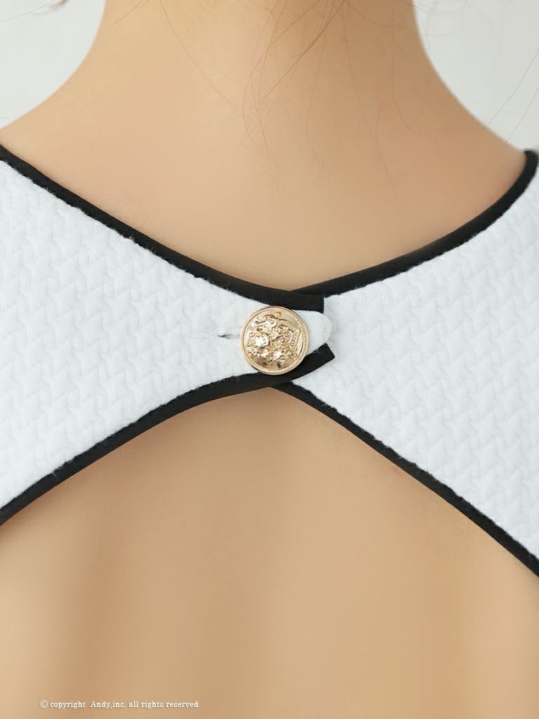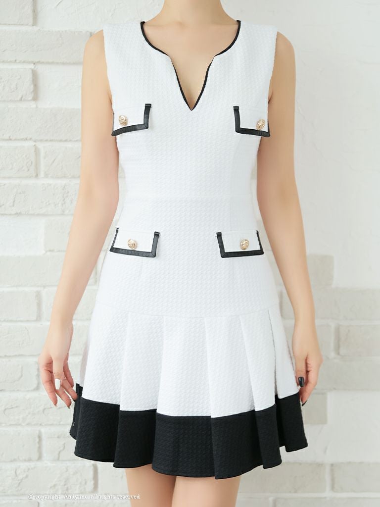 ポケットのデザインが可愛い☆ [Andy/アンディ] 高級バイカラーノースリーブプリーツフレアミニドレス