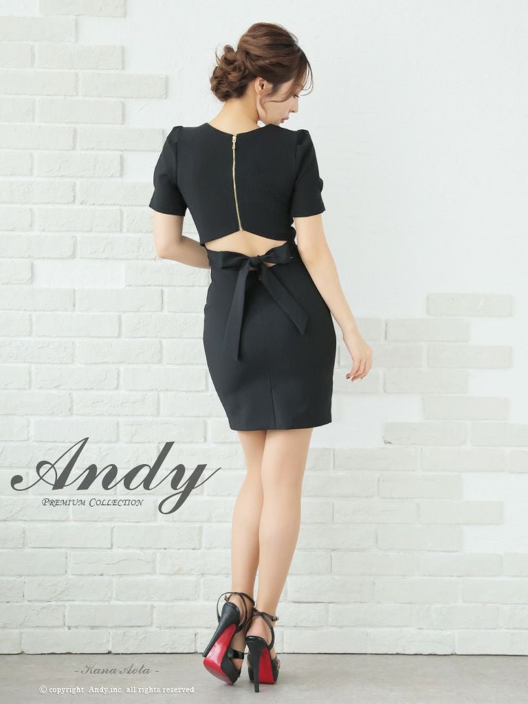 キャバドレス Andy アンディ 高級チェーンデザインバックジップ×リボン半袖タイトミニドレス