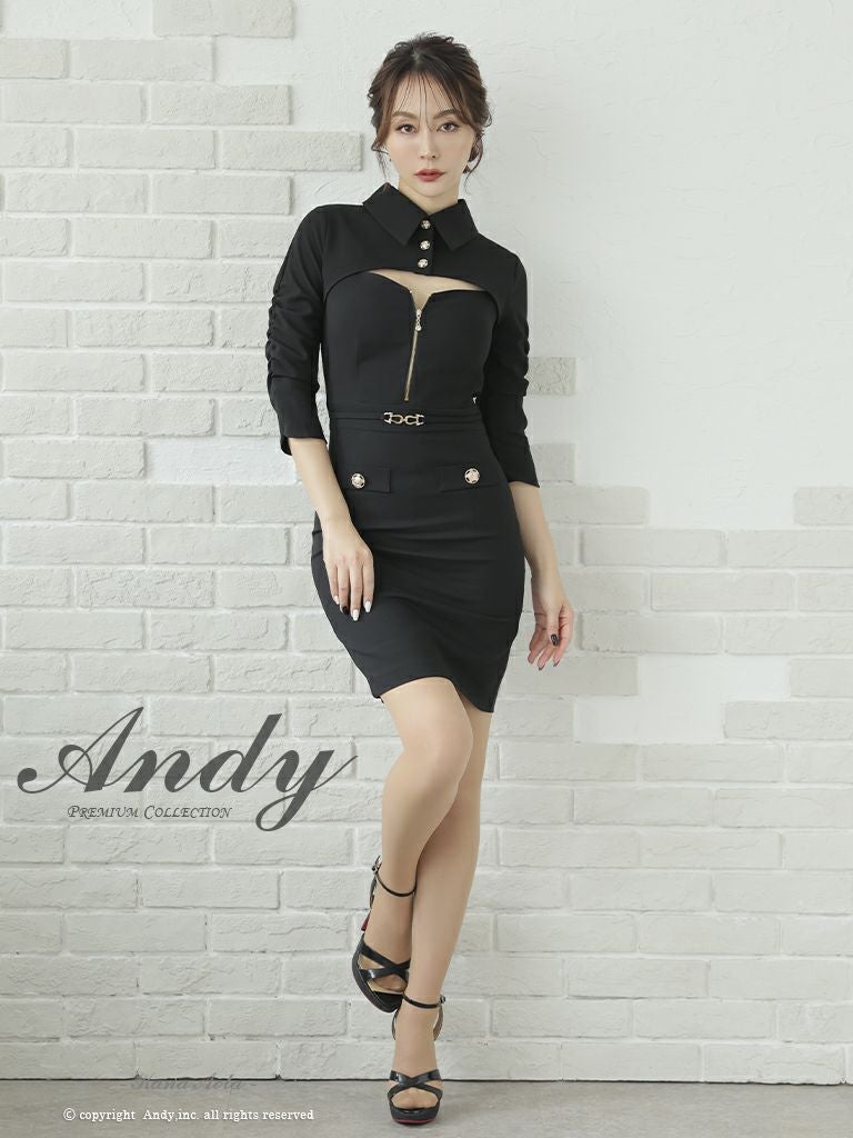 キャバドレス Andy アンディ 高級ワンカラー襟デザインジップ袖ありタイトミニドレス