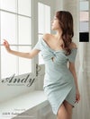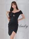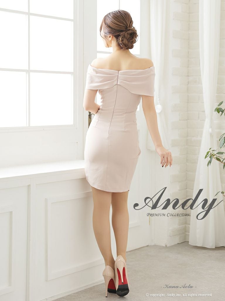 キャバドレス Andy アンディ 高級 オフショルダー 半袖 タック バストカット スリット ワンカラー タイトミニ キャバドレス