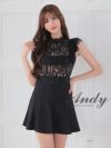 キャバドレス Andy アンディ 高級ノースリーブネックリボンウエストベルトフラワーレースフレアミニドレス