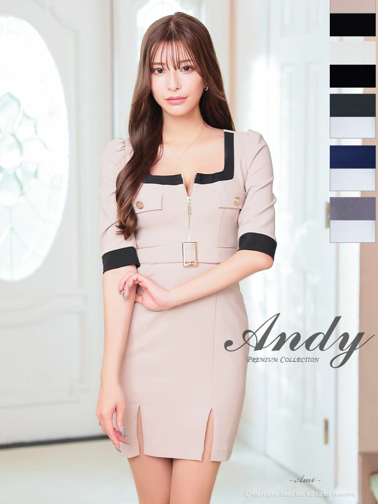キャバドレス Andy アンディ 高級 袖あ りウエストベルト ジップ ゴールドボタン タイトミニドレス