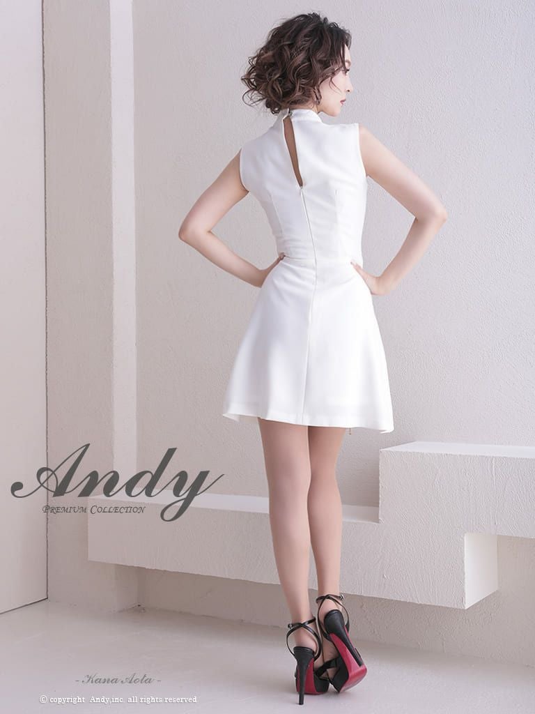 キャバドレス Andy アンディ 高級 ノースリーブ ジップ ゴールドボタン ワンカラー フレア ミニドレス