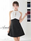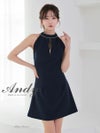 大人女性の美しさを引き出すミニドレス☆ [Andy/アンディ] 高級ホルターネック ジップデザイン ビジュー バックカット リボン フレアミニドレス