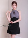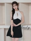 5. [Andy/アンディ] 高級ホルターネック ジップデザイン ビジュー バックカット リボン フレアミニドレス