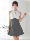 4. [Andy/アンディ] 高級ホルターネック ジップデザイン ビジュー バックカット リボン フレアミニドレス