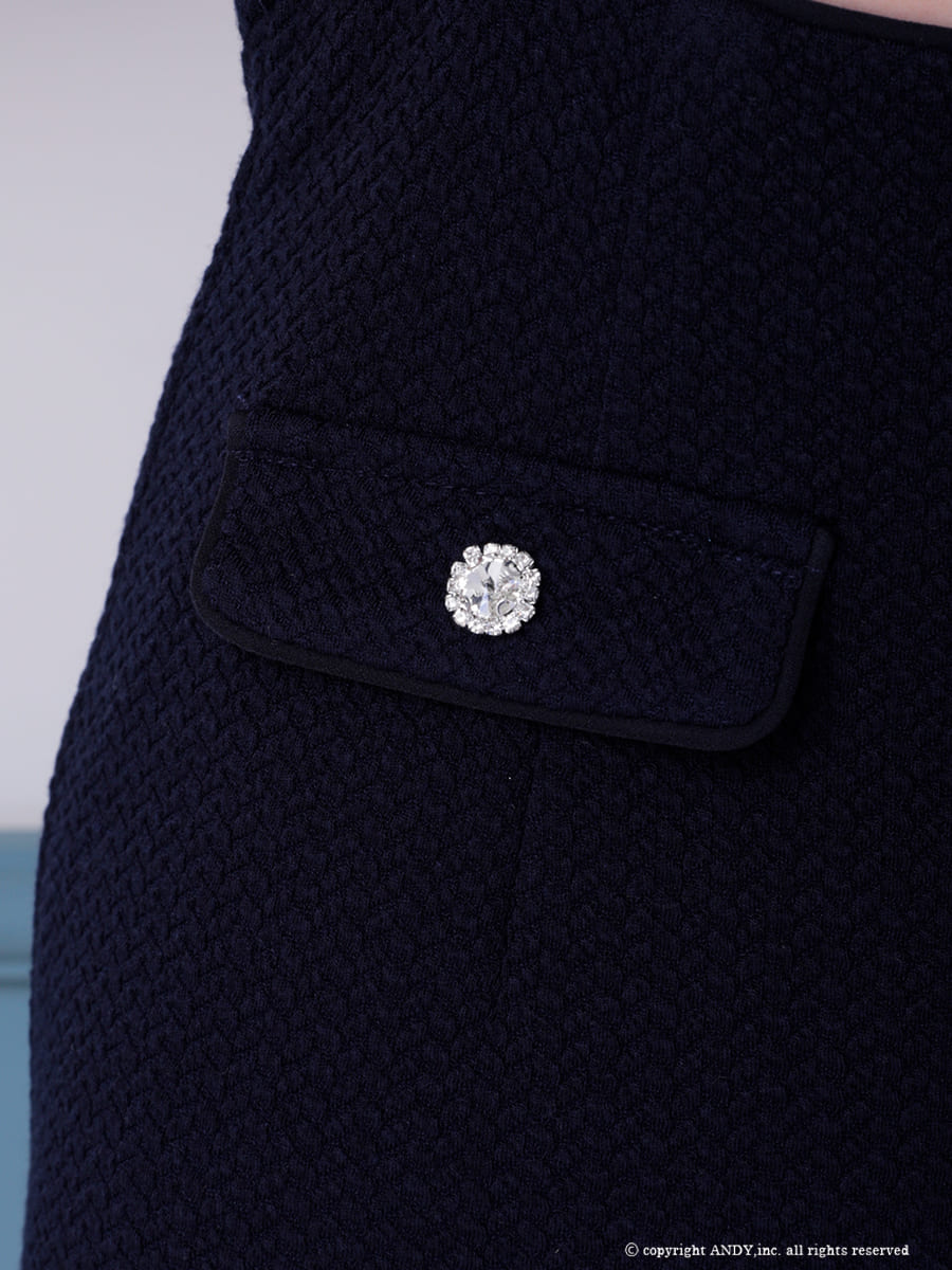 3. [Andy/アンディ] 高級 半袖 ウエストカット バストシースルー チェーン 裾フリル ボタン タイトミニドレス