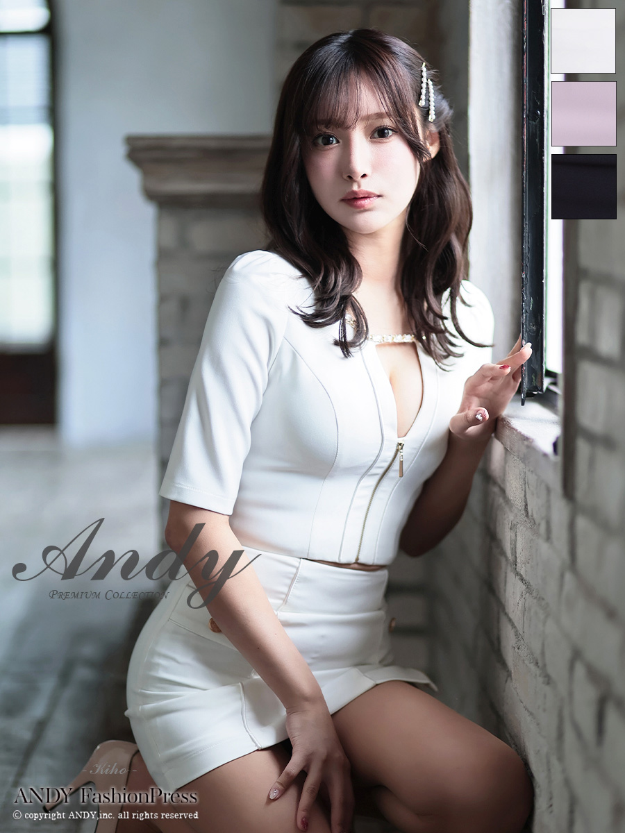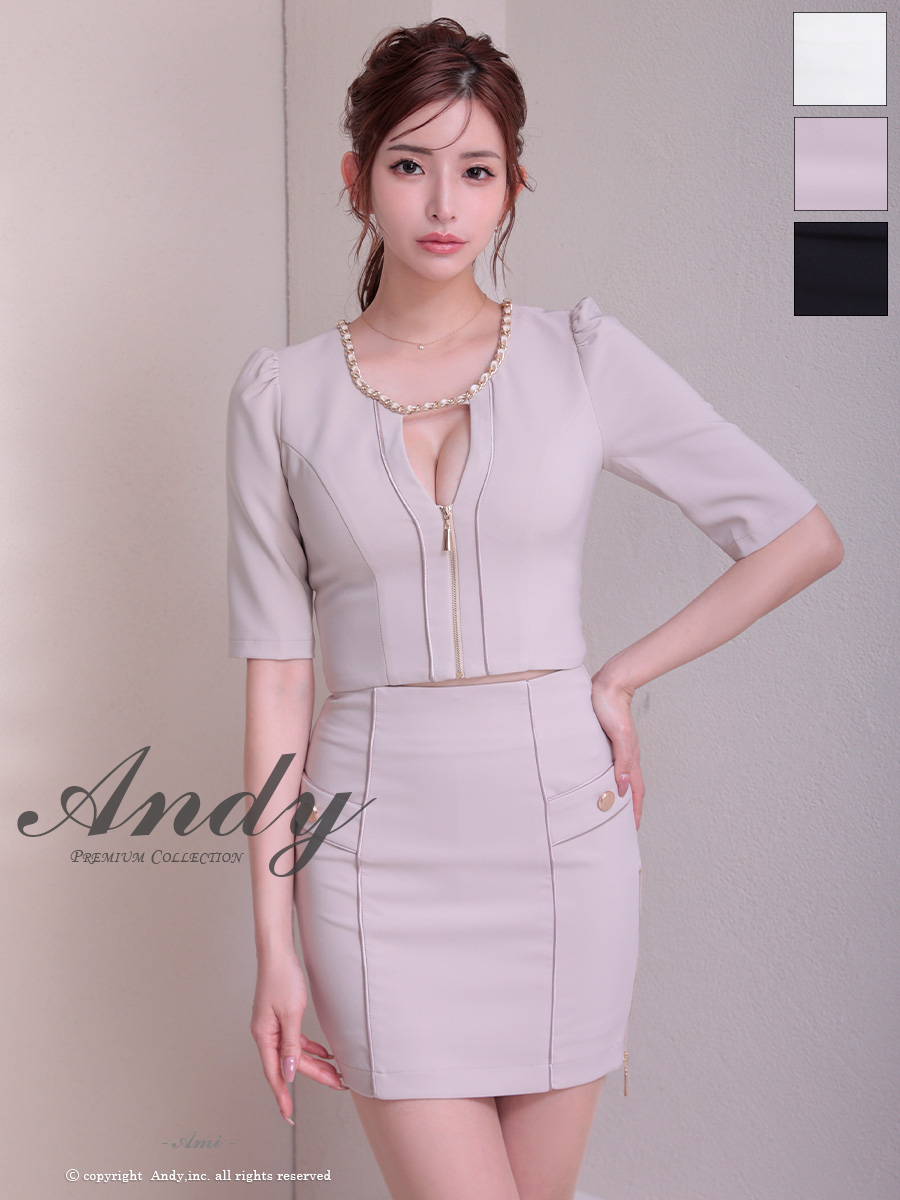 3. [Andy/アンディ] 高級 袖あり バストカット ポケット セットアップ ジップデザイン スリット タイトミニドレス