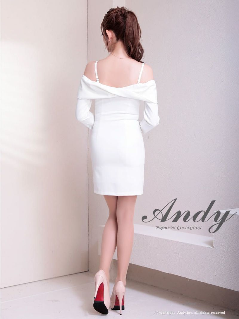 キャバドレス Andy アンディ 高級 オフショルダー 長袖 肩あき ボタン ポケット 背中魅せ タイトミニドレ