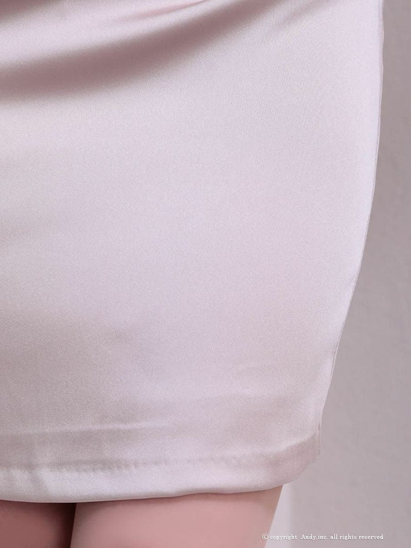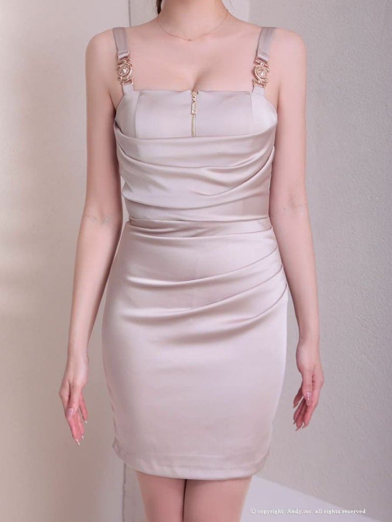 4. [Andy/アンディ] 高級 ノースリーブ ジップ サテン タック ワンカラー タイトミニドレス