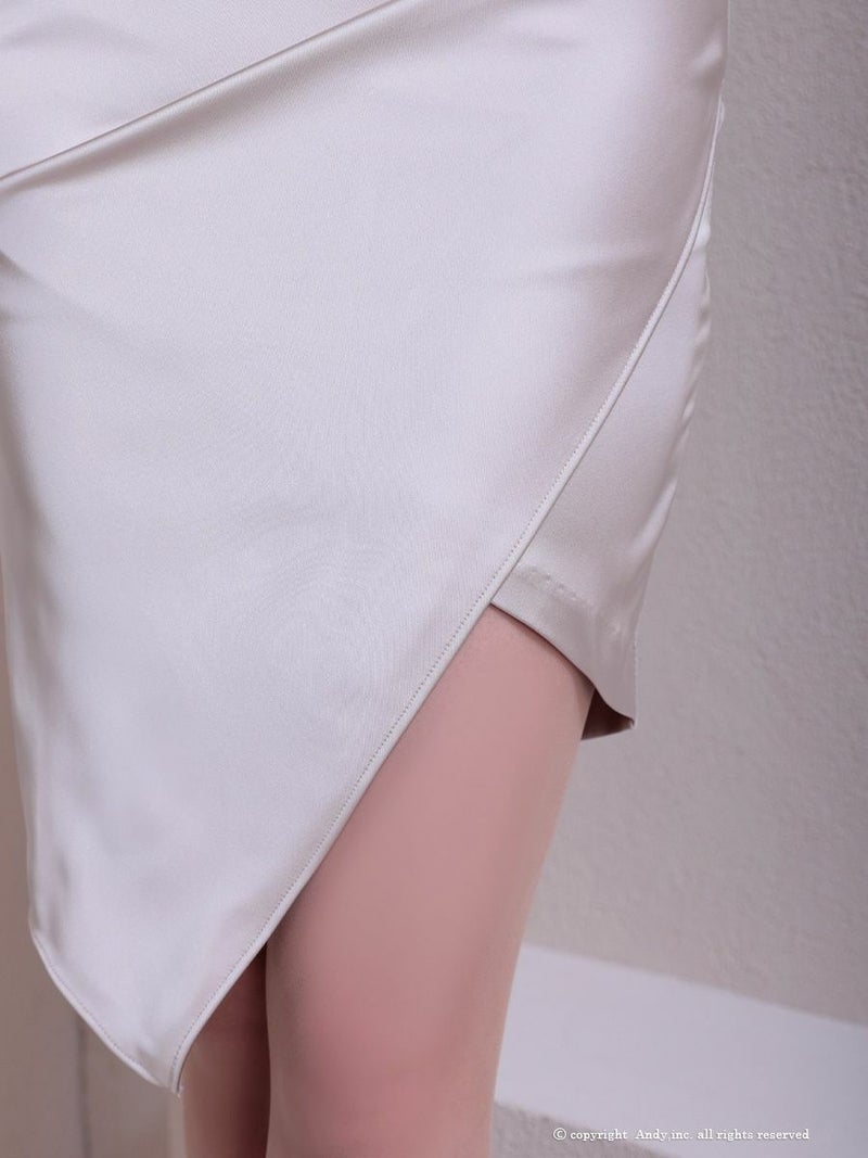 4. [Andy/アンディ] 高級 ワンカラー クロスオフショルダー タック アシメデザイン タイトミニドレス