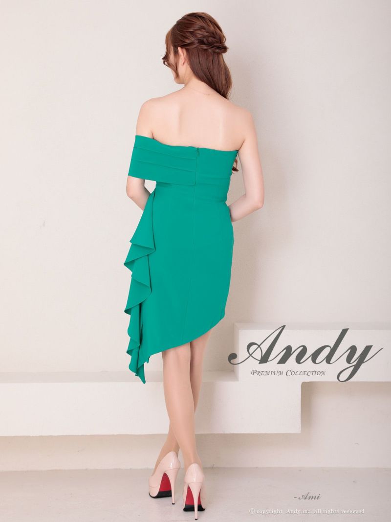 キャバドレス Andy アンディ 高級 オフショルダー ワンカラー フリルデザイン アシンメトリー タイト膝丈ドレス