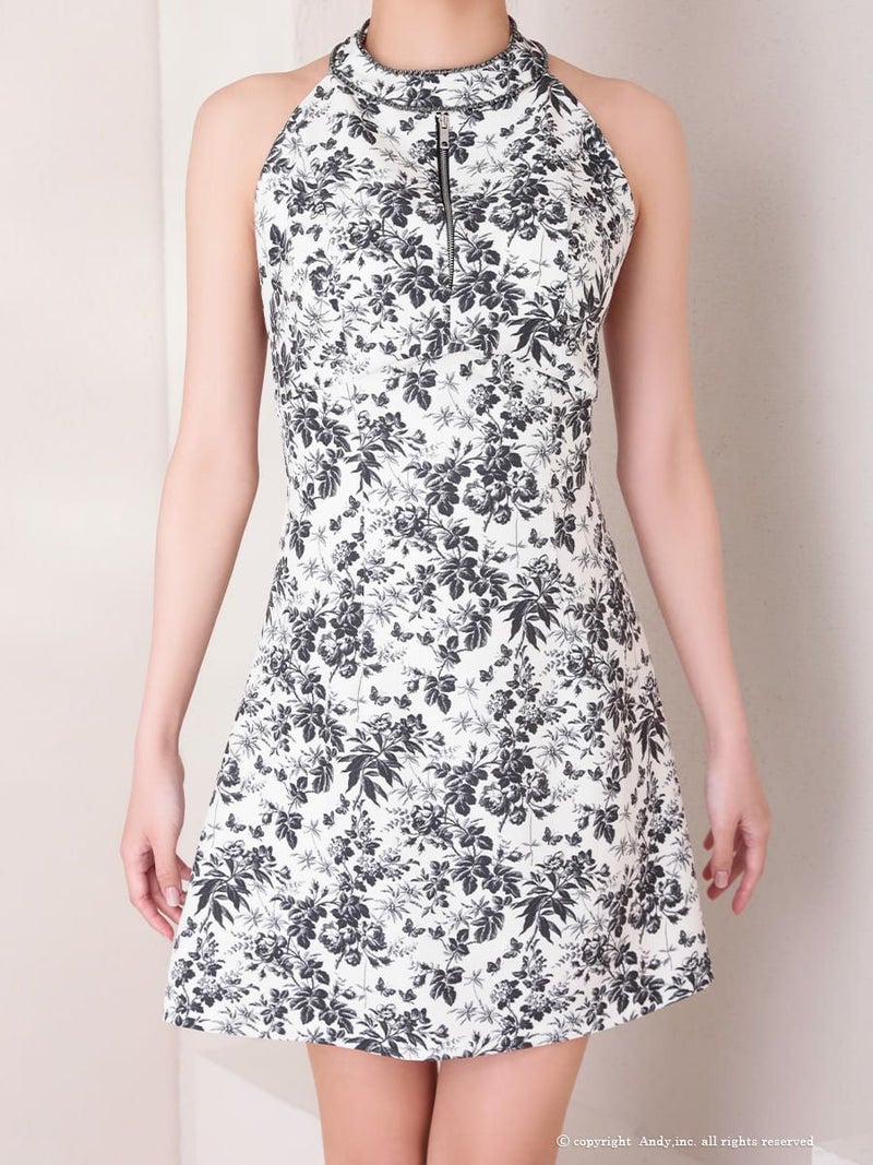 5. [Andy/アンディ] 高級 ホルターネック バストジップ リボン トワルドジュイ フレアミニドレス