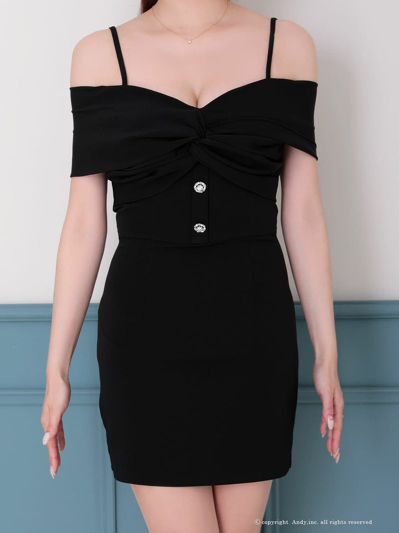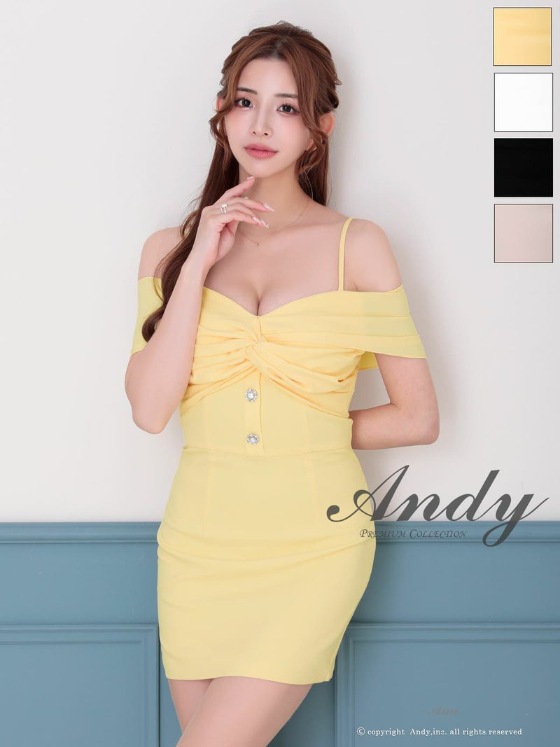 キャバドレス Andy アンディ 高級 オフショルダー ワンカラー タック 谷間 シンプル タイト ミニキャバドレス