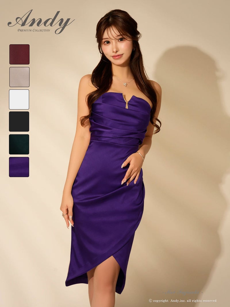 キャバドレス Andy アンディ 高級 ブランド タイト ミニドレス 谷間 大人 上品 ジップ ベアトップ ギャザー