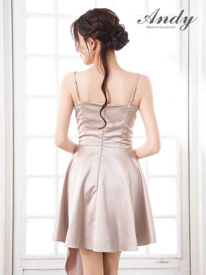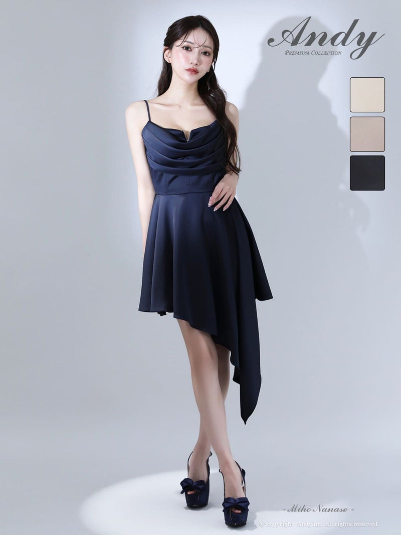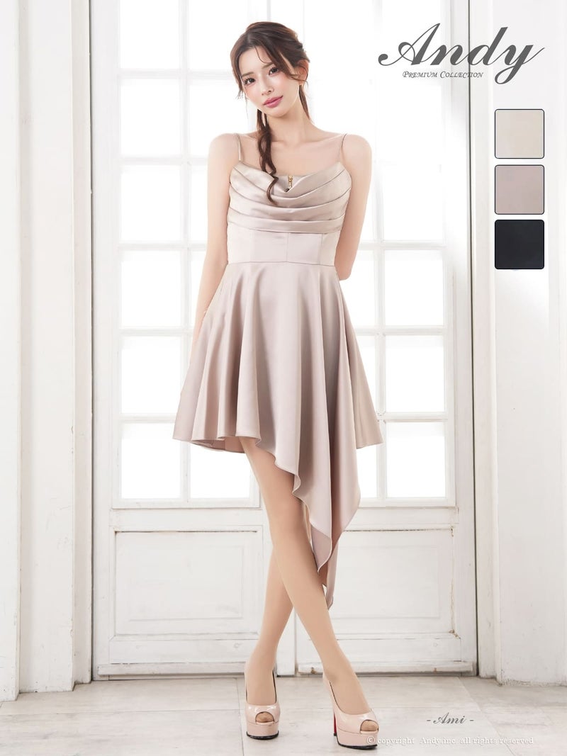 キャバドレス Andy アンディ 高級 キャミソール フレアミニドレス 谷間見せ ジップ ワンカラー プリーツ アシンメトリー
