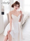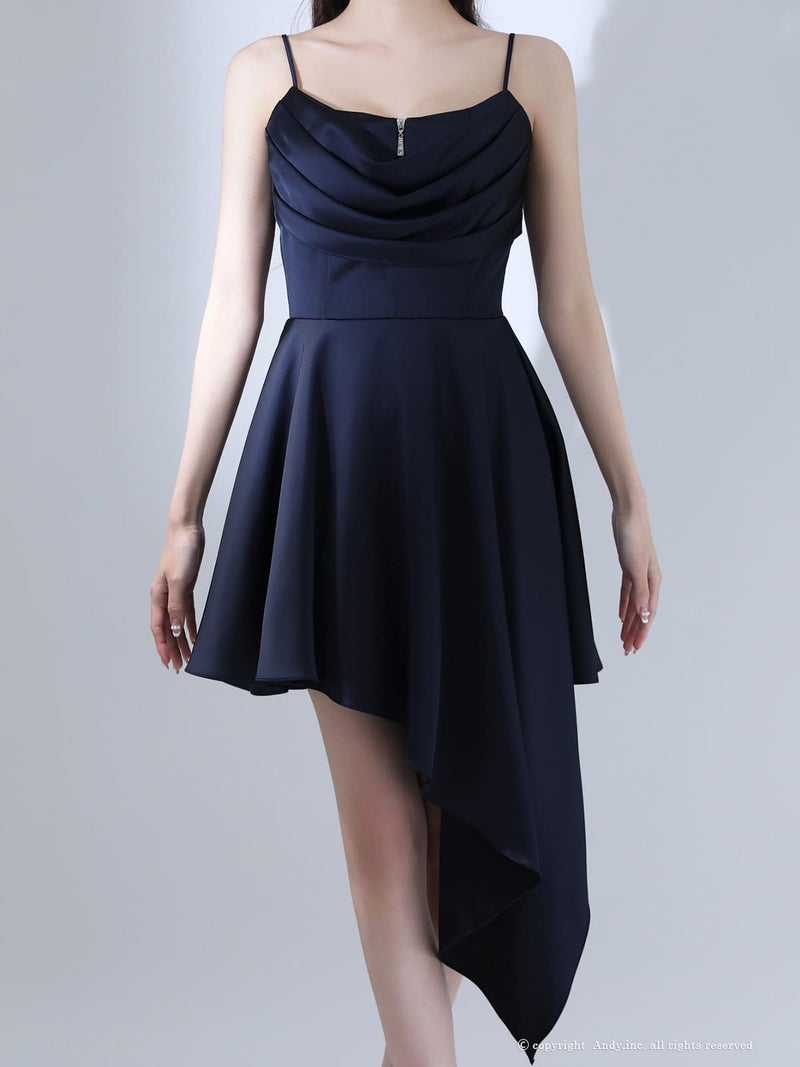 キャバドレス Andy アンディ 高級 キャミソール フレアミニドレス 谷間見せ ジップ ワンカラー プリーツ アシンメトリー