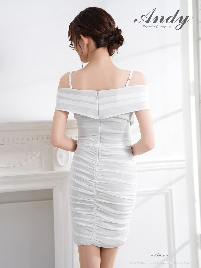 4. [Andy/アンディ] 高級 オフショルダー タイトミニドレス 谷間見せ タック ワンカラー