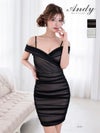 4. [Andy/アンディ] 高級 オフショルダー タイトミニドレス 谷間見せ タック ワンカラー