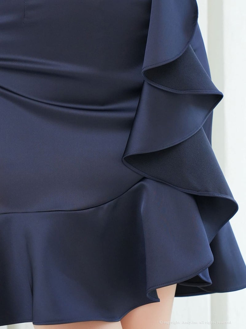 キャバドレス Andy アンディ 高級 ノースリーブ タイトミニドレス ハイネック ジップ バストカット ウエストマーク フリル ワンカラー