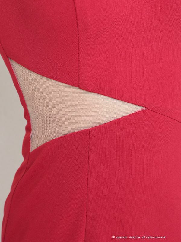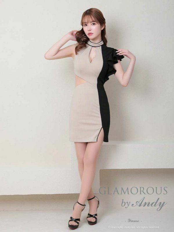 AndyGLAMOROUS アンディグラマラス 高級バイカラーバストカットアウトウエストヌーディーシアーアシメフリルノースリーブタイトミニドレス