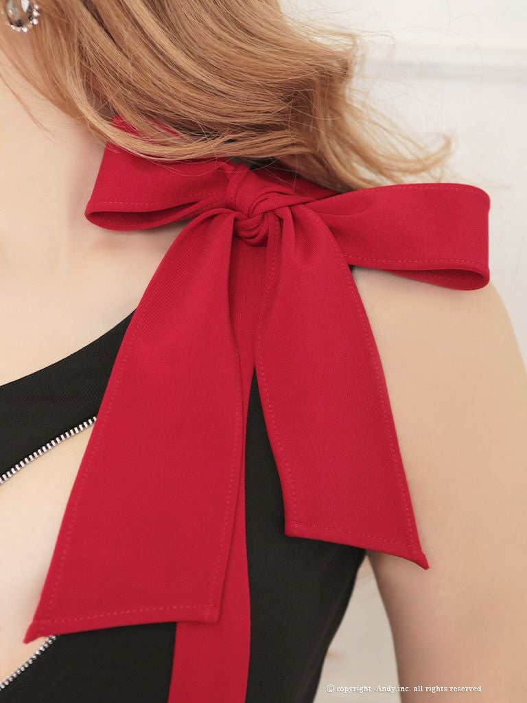 ボディラインを強調するデザインが魅力的☆ [AndyGLAMOROUS/アンディグラマラス] 高級ワンショルダー バイカラー リボン バスト ジップ タイトミニドレス