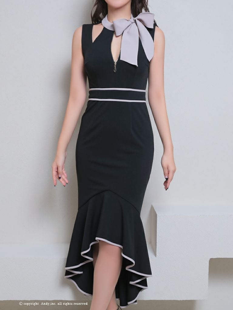 5. [AndyGLAMOROUS/アンディグラマラス] 高級ノースリーブ ネックリボン ジップ ロングテールドレス
