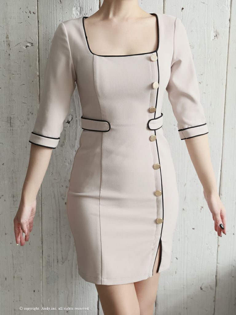 4. [AndyGLAMOROUS/アンディグラマラス] 高級袖ありゴールドボタンスクエアネックタイトミニドレス