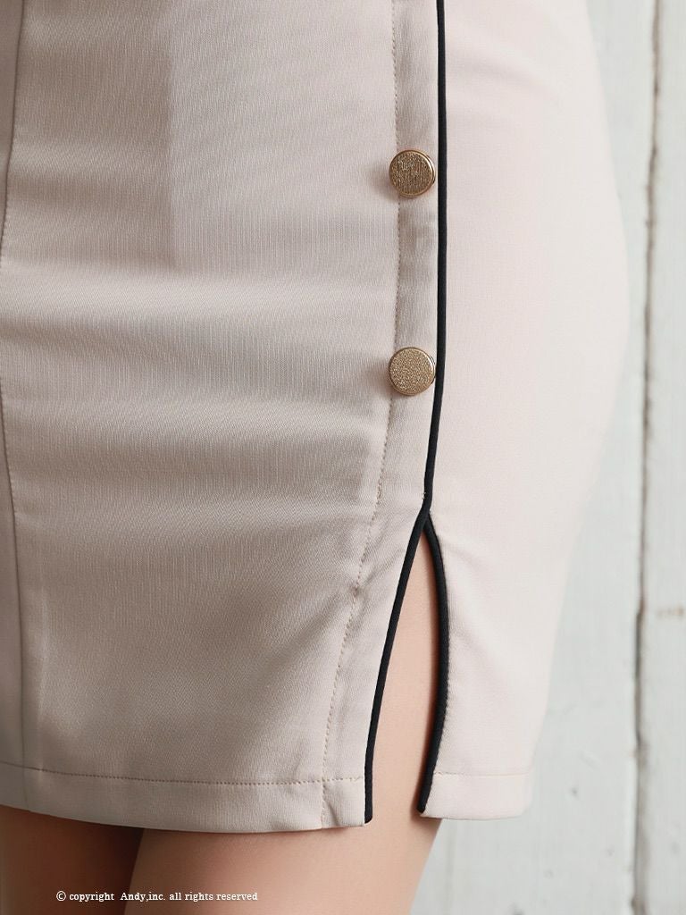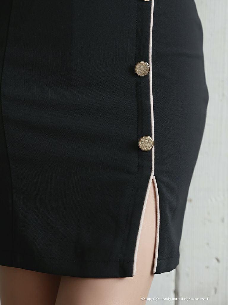 キャバドレス AndyGLAMOROUS アンディグラマラス 高級袖ありスリットゴールドボタンスクエアネックタイトミニドレス