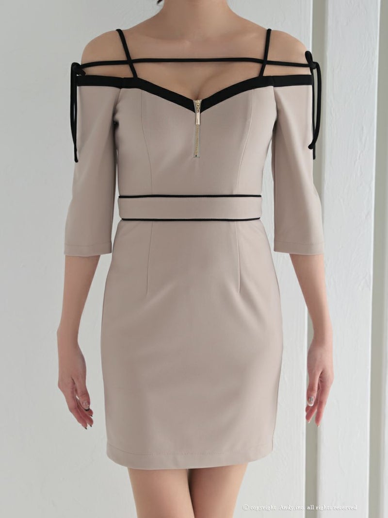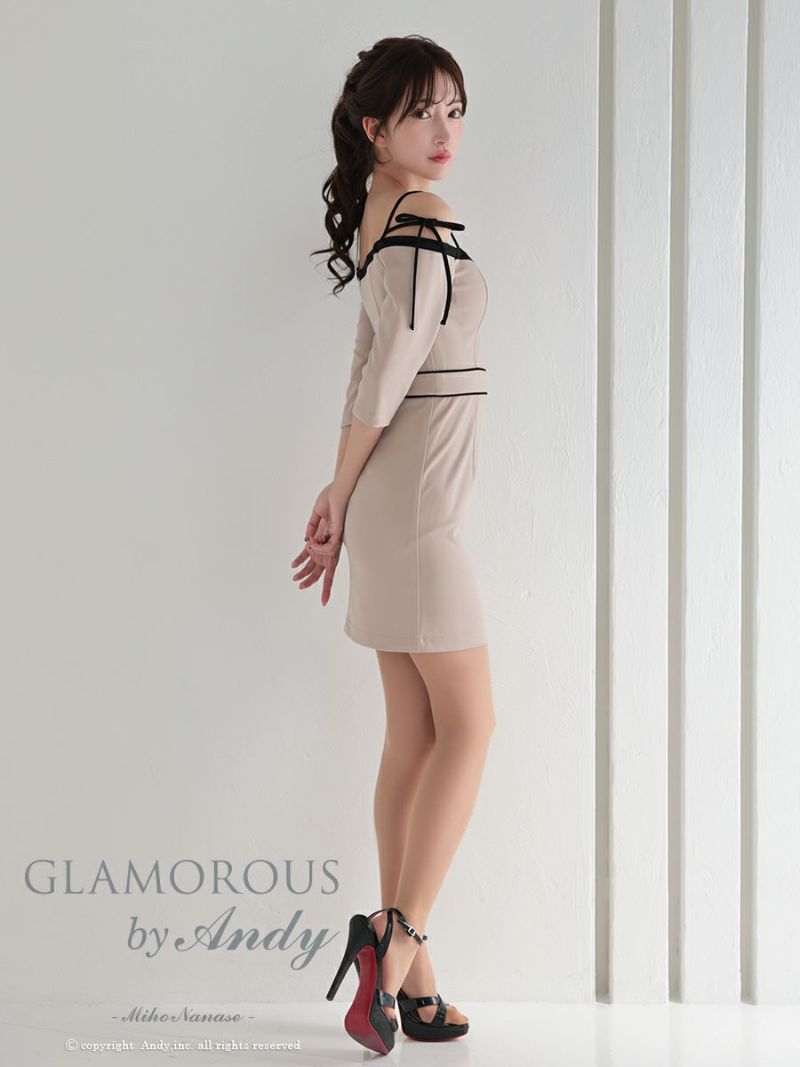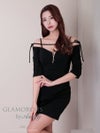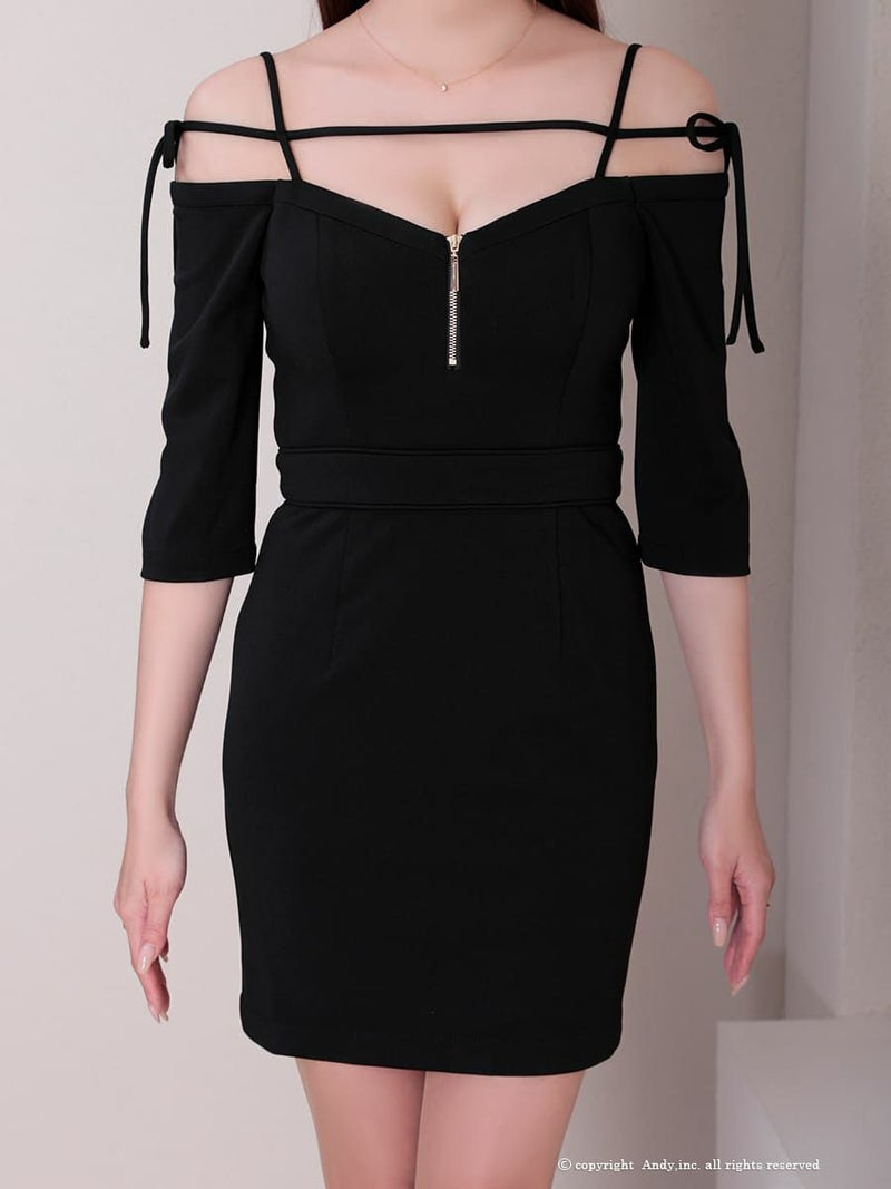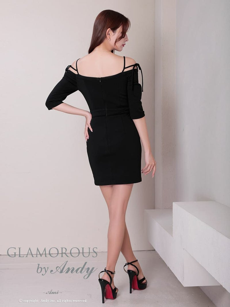キャバドレス  AndyGLAMOROUS アンディグラマラス 高級 オフショルダー 七分袖 リボン ジップ タイト ミニドレス
