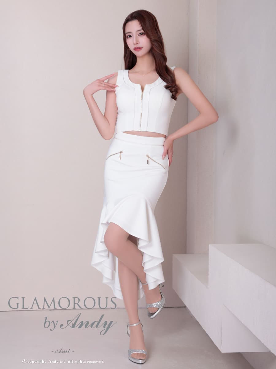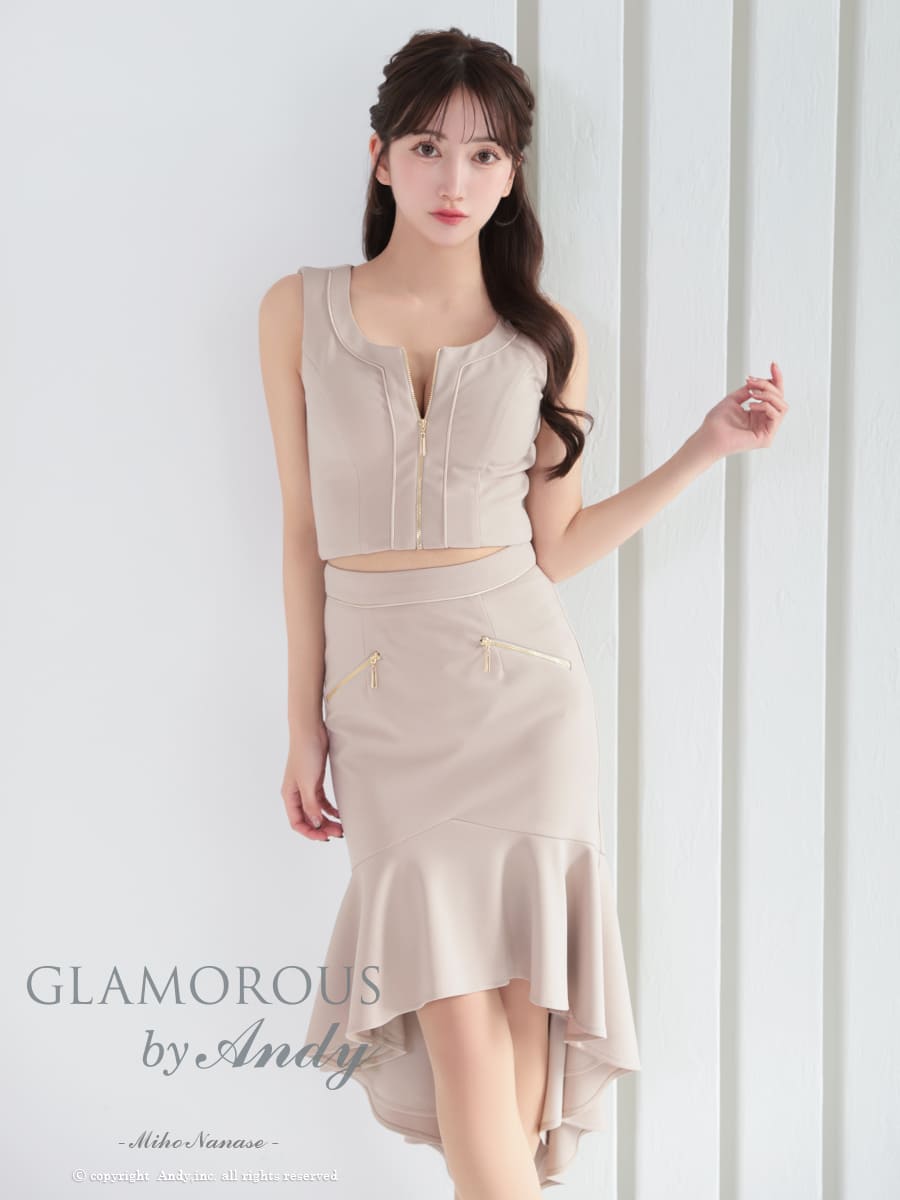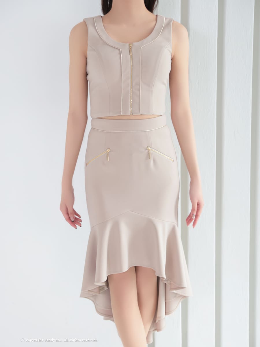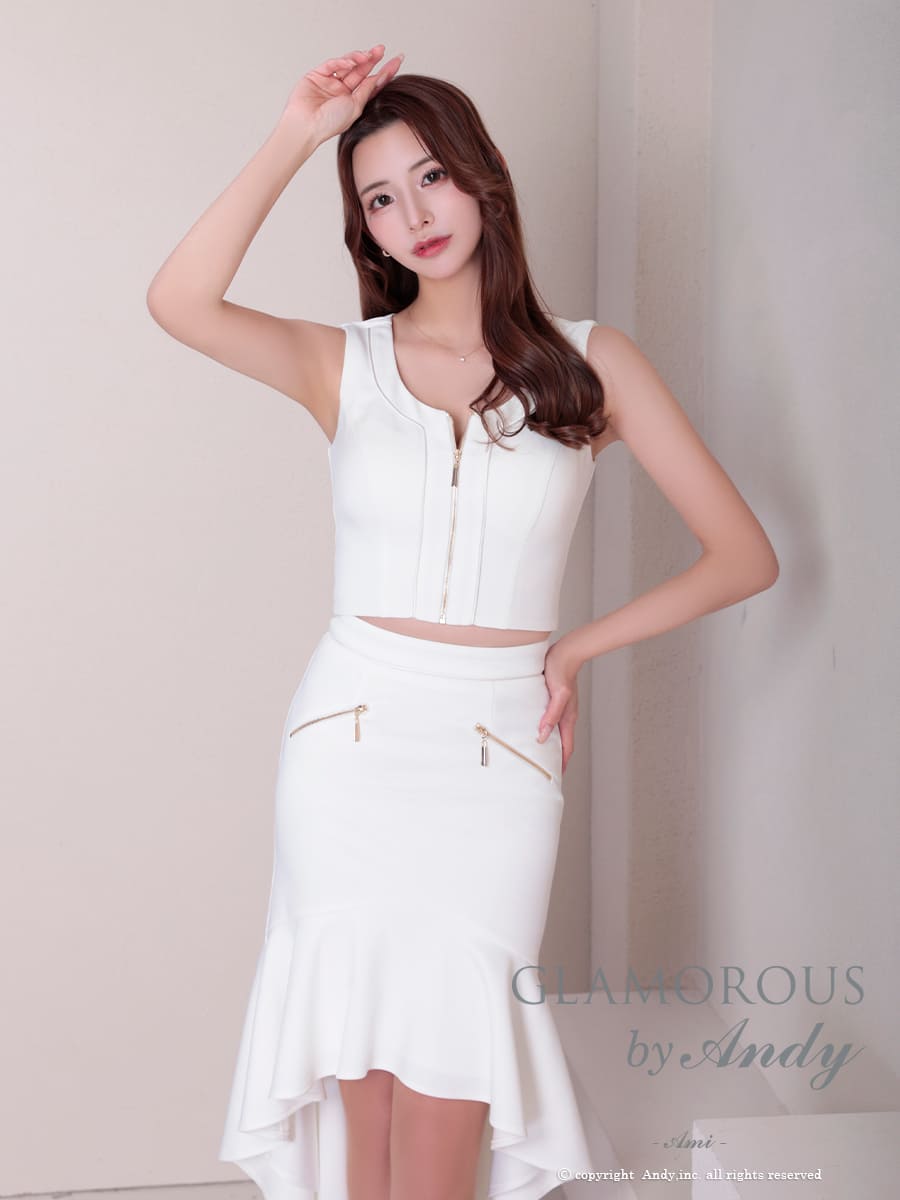 キャバドレス Andy アンディ  高級ノースリーブフロントジップセットアップマーメイド谷間魅せロングテールドレス