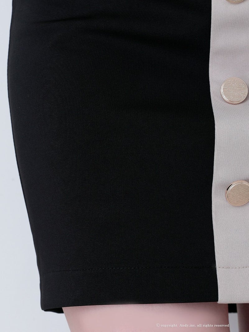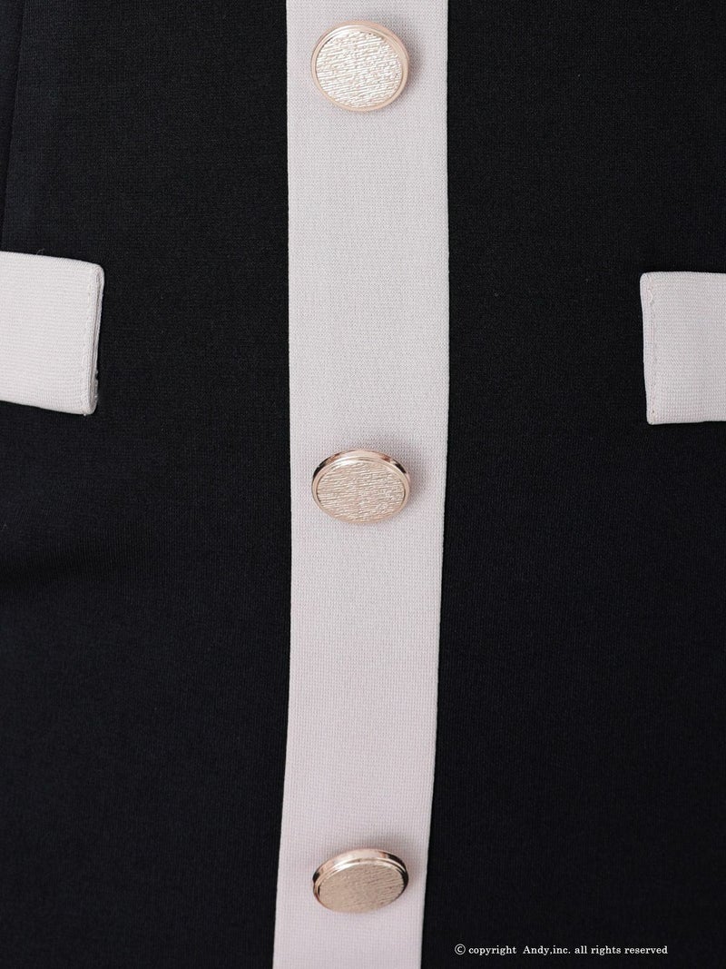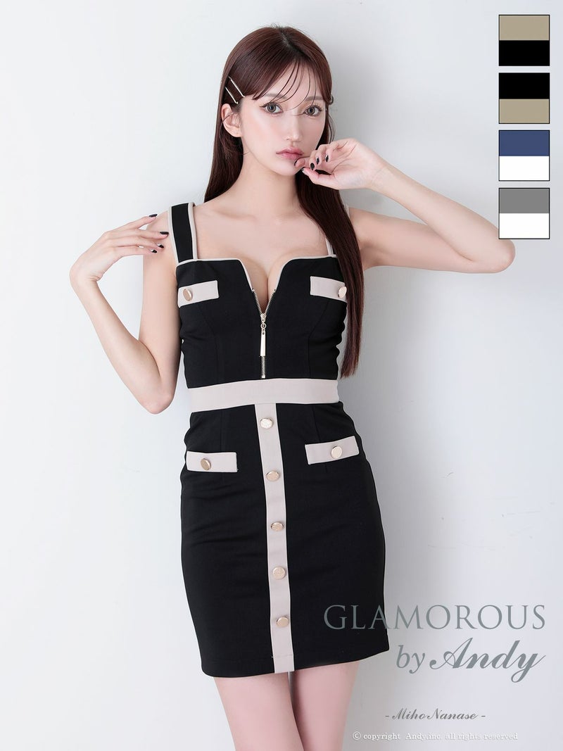 5. [AndyGLAMOROUS/アンディグラマラス] 高級 パイピング ノースリーブ ジップ ボタン フェイクポケット 谷間魅せ タイトミニドレス