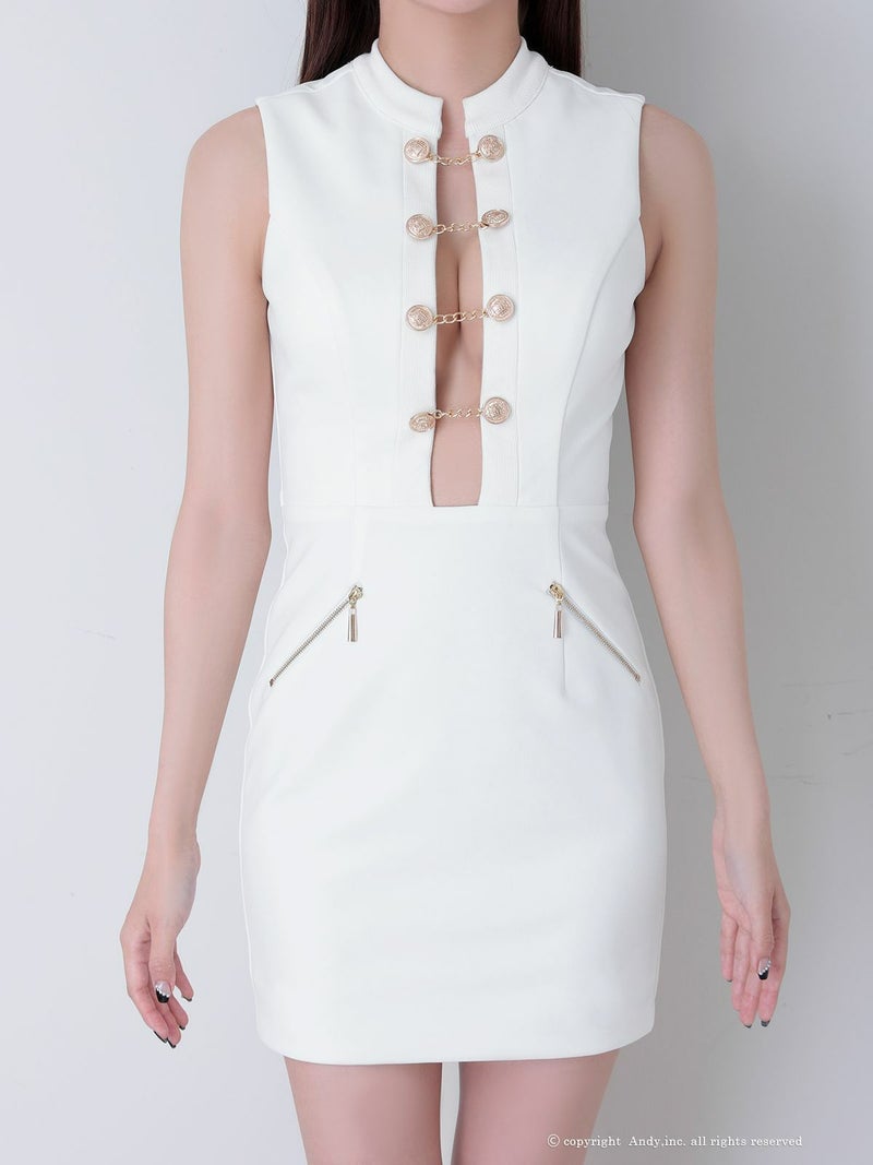 4. [AndyGLAMOROUS/アンディグラマラス] 高級 ブランド タイトミニドレス 谷間 大人 ノースリーブ ジップ ゴールドチェーン ボタン セクシー
