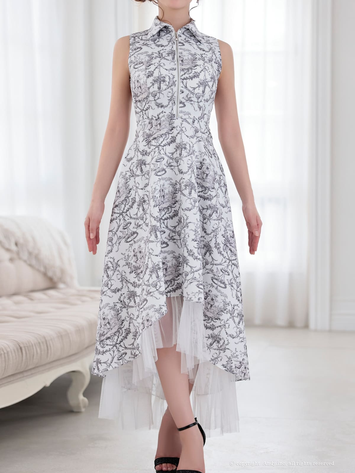 他の画像を見る たっぷりのフリルがゴージャスな印象を与える☆ [an/アン] 高級 ノースリーブ ロングドレス ロングテール バストカット ジップ フリル タック ¥ 29,700 税込 お気に入りに追加