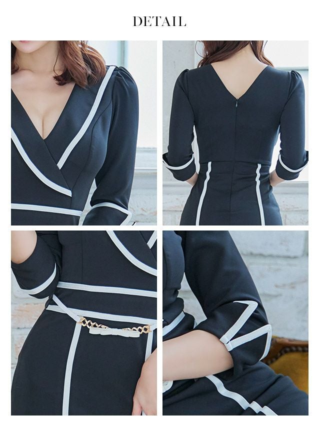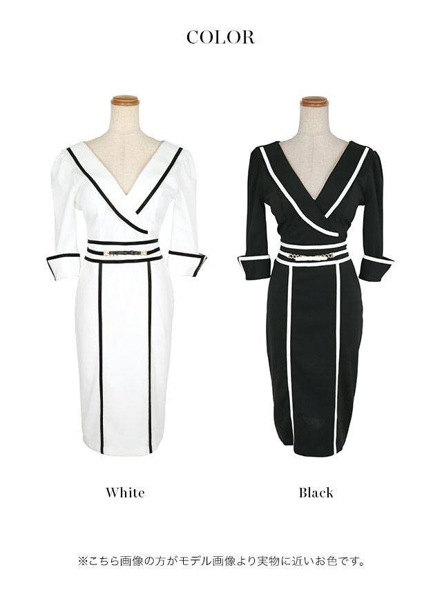 他の画像を見る 清楚感溢れるエレガントドレス☆ [韓国ドレス] タイト膝丈ドレス 袖あり 七分袖 バイカラー カシュクール ウエストベルト (Sサイズ~Lサイズ) (一条響着用) [Anella] ¥ 17,600 税込 詳細を見る お気に入りに追加