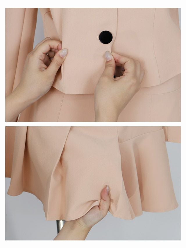 他の画像を見る 着脱楽ちんセットアップ☆ [SUPER SALE] 韓国ドレス Aラインミニドレス セットアップ 長袖 袖あり ネックリボン ベロアジャケット ボタン ボックスタックスカート 大人 (Sサイズ~Lサイズ) (伊藤舞雪着用) [Anella] ¥ 28,600 ¥ 19,800 税込 詳細を見る お気に入りに追加