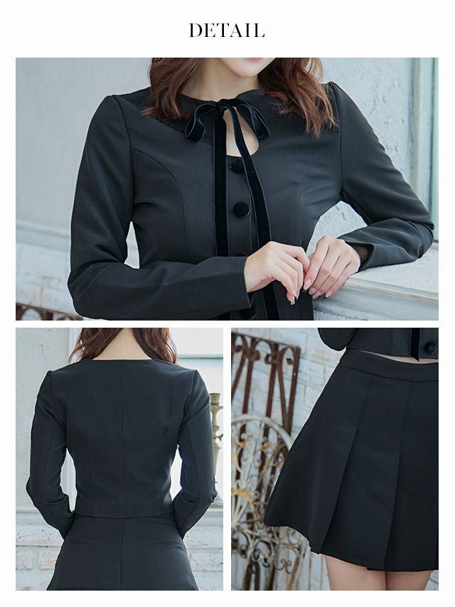 他の画像を見る トレンドをおさえた品のある韓国スタイルに☆ [SUPER SALE] 韓国ドレス Aラインミニドレス 長袖 袖あり 胸元カバー セットアップ ネックリボン ベロアジャケット ボックスタックスカート 大人 (Sサイズ~Lサイズ) (一条響着用) [Anella] ¥ 28,600 ¥ 19,800 税込 詳細を見る お気に入りに追加