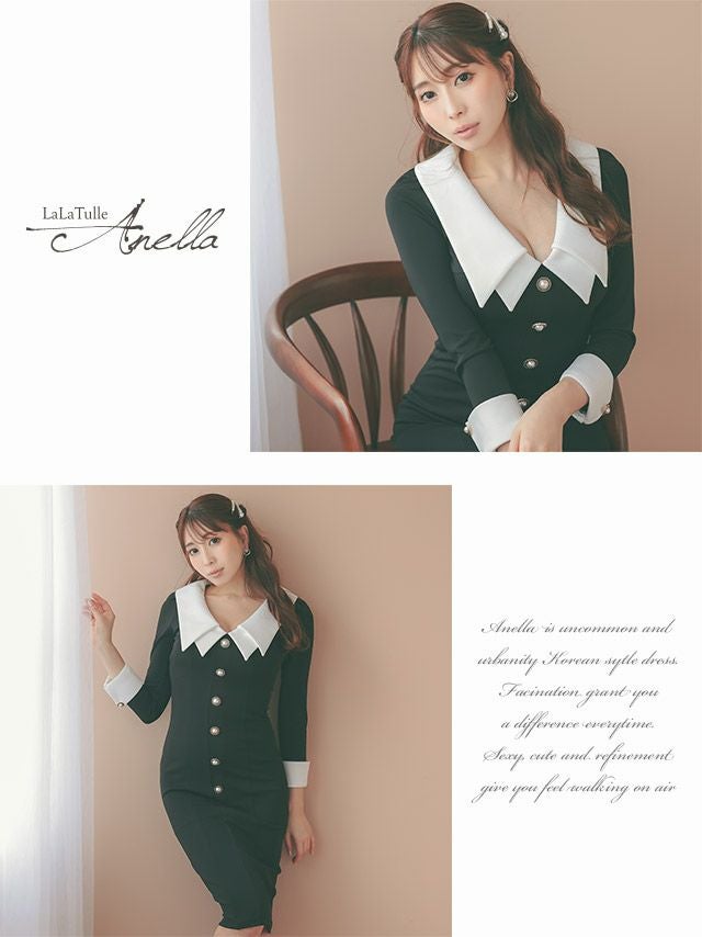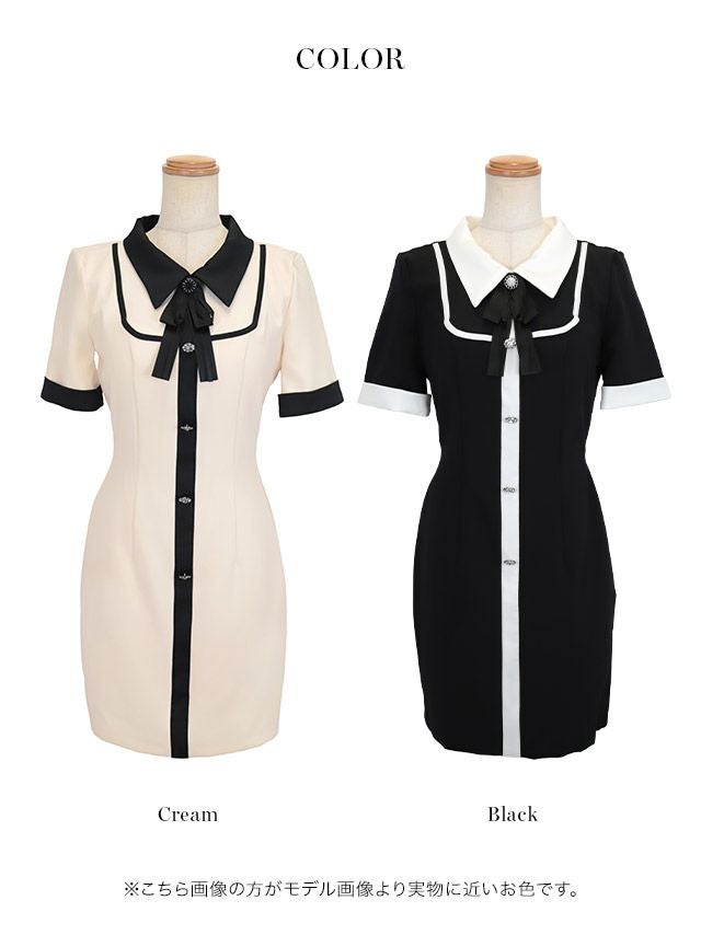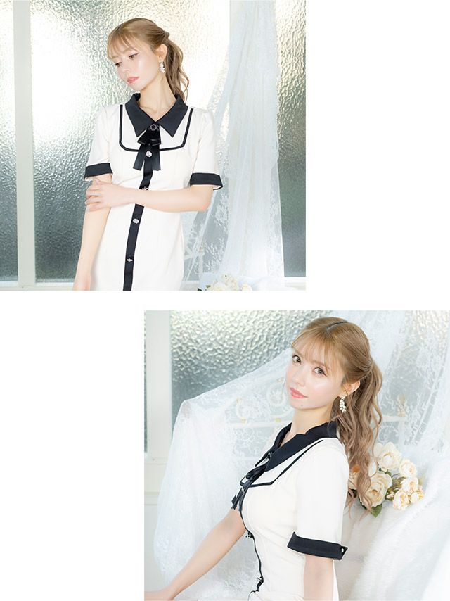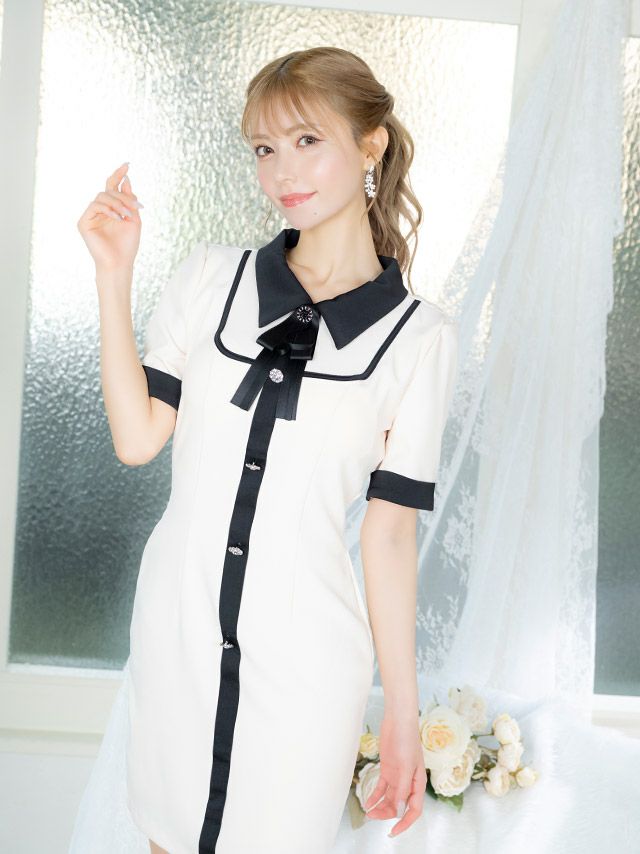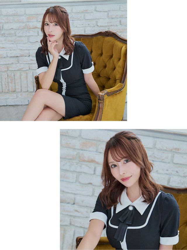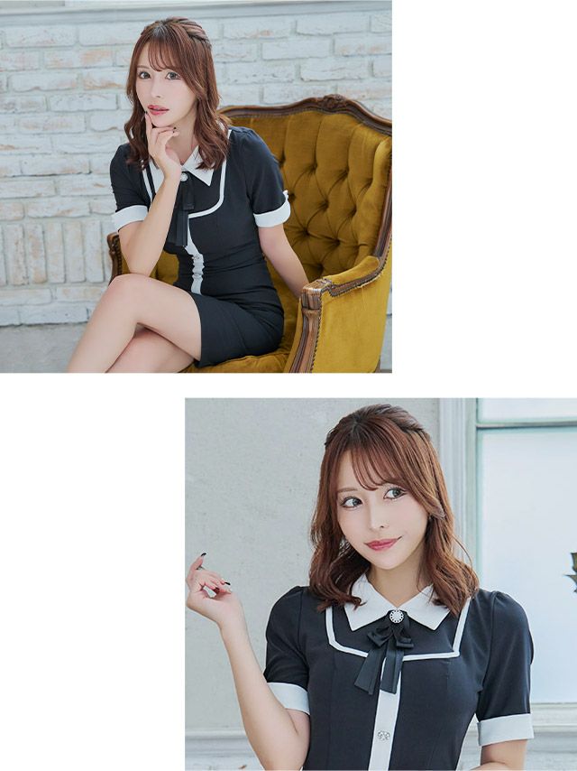 他の画像を見る 同伴から使える☆ [SUPER SALE] 韓国ドレス タイトミニドレス 半袖 リボン 襟付き 胸元カバー モノトーン (Sサイズ/Mサイズ) (一条響着用) [Anella] ¥ 24,200 ¥ 14,300 税込 詳細を見る お気に入りに追加