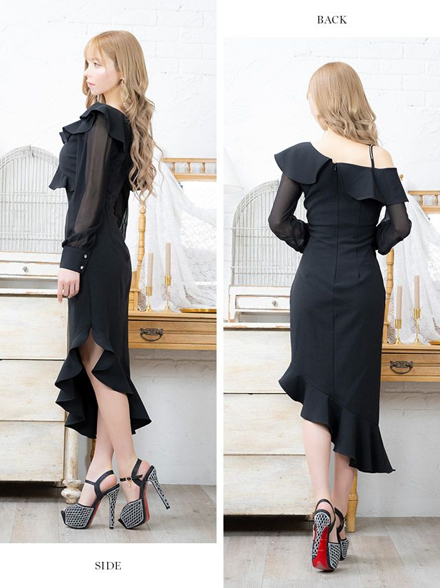 他の画像を見る フリルデザインが女性らしい☆ [韓国ドレス] タイト膝丈ドレス 袖あり 長袖 フリルワンショルダー シースルー (Sサイズ~Lサイズ) (伊藤舞雪着用) [Anella] ¥ 24,200 税込 詳細を見る お気に入りに追加