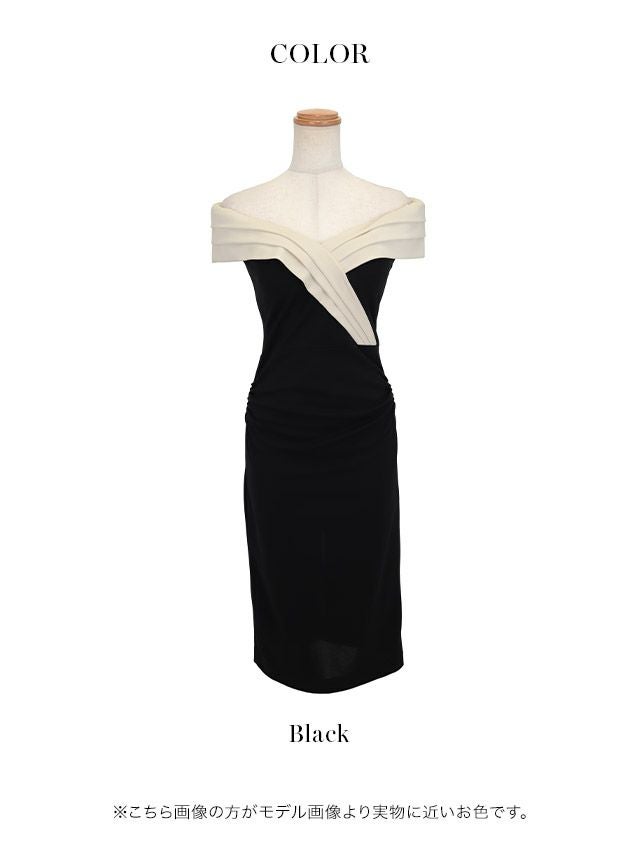 他の画像を見る デコルテ魅せで魅了して☆ [韓国ドレス] タイト膝丈ドレス オフショルダー バイカラー 大人 (Sサイズ~Lサイズ) (一条響着用) [Anella] ¥ 16,500 税込 詳細を見る お気に入りに追加